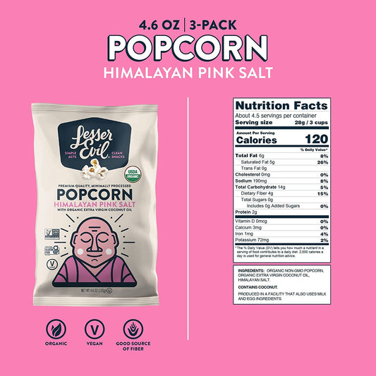 LesserEvil Himalayan Pink Salt Organic Popcorn